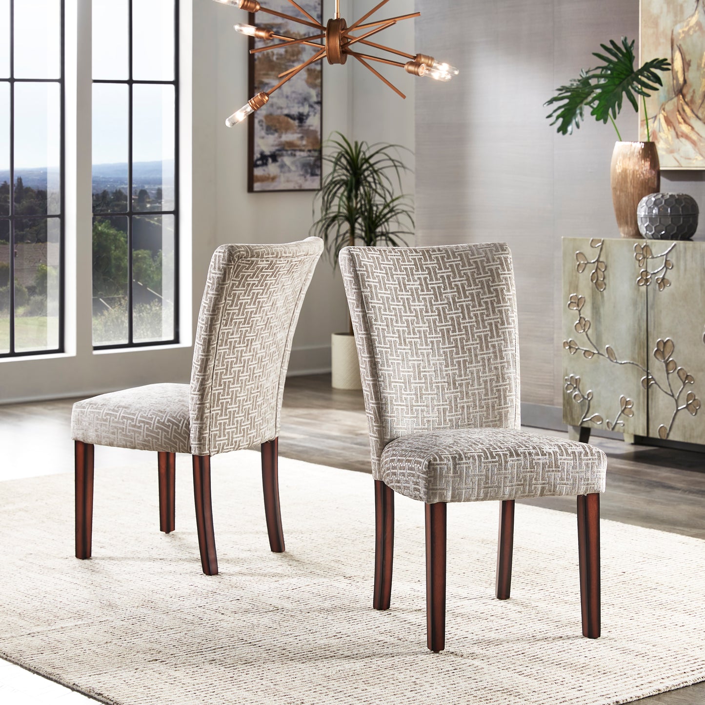 Print Parsons Dining Side Chairs (Set of 2) - Espresso Finish, Gray Bracket Chain Print Fabric