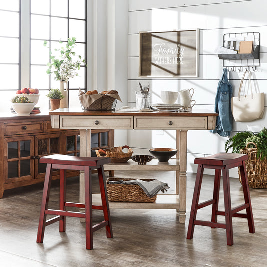 Saddle Seat 24" Counter Height Backless Stools (Set of 2) - Antique Berry Finish