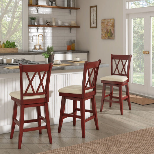 Double X-Back Counter Height Wood Swivel Chair - Antique Berry Finish