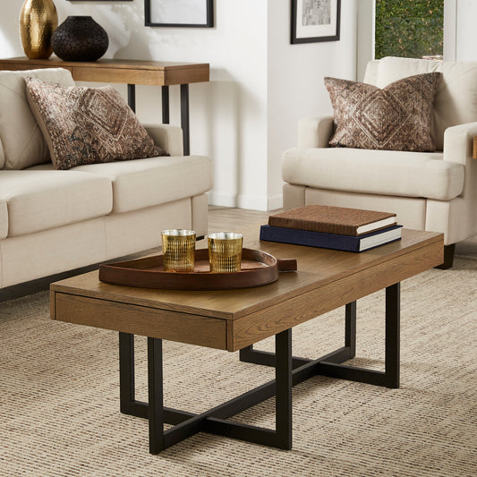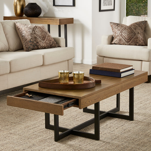 Wood Finish Tables with Drawers - Brown Finish, Coffee Table Only