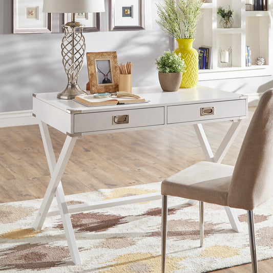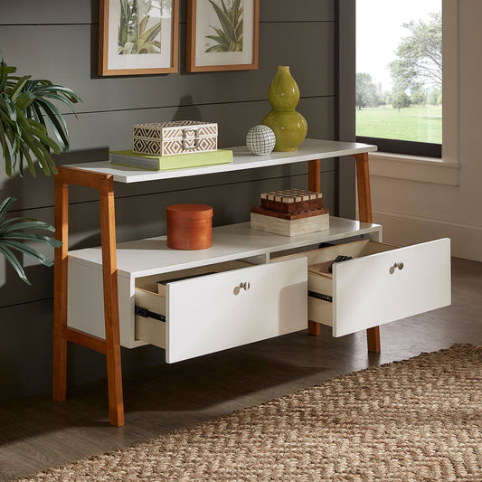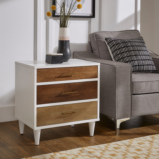Two-Tone Rectangular End Table with USB Port - White Finish