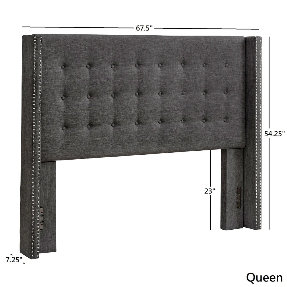 Simple and beautiful, by adding the iNSPIRE Q linen headboard by iNSPIRE Q Bold to your bedroom, your slumber space is sure to display some serious elevated style. A soft linen upholstery features a wingback design, combined with button tufting detail to create a luxurious look for your space. Added nailhead trim provides just the right amount of glam needed to make the headboard pop.