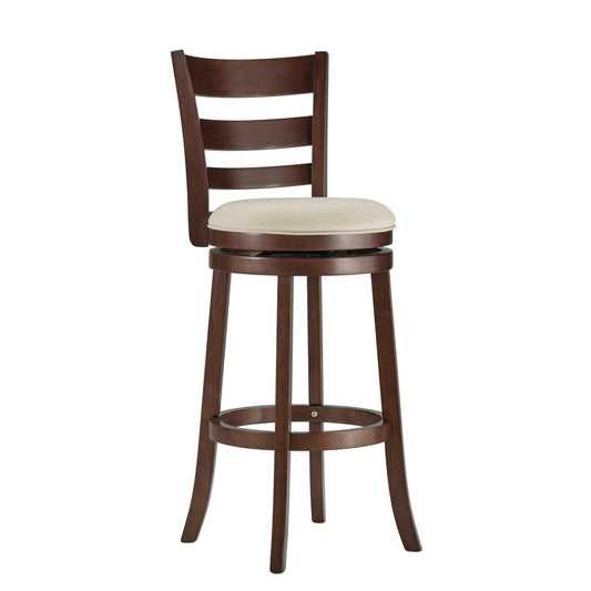 Ladder Back 29"H Swivel Bar Stool - Dark Cherry Finish, Beige Linen