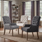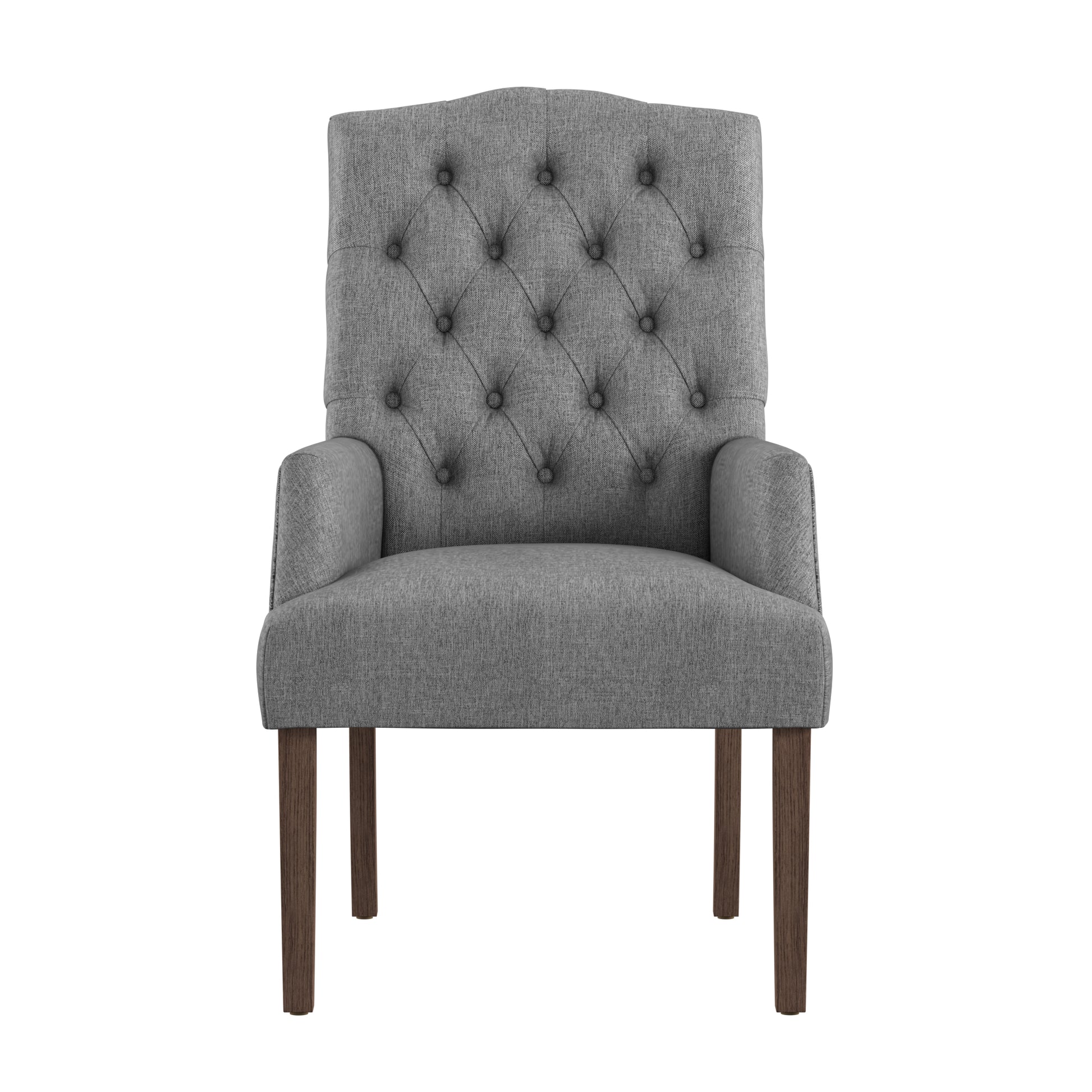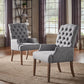 Light Distressed Natural Finish Linen Tufted Dining Chair - Gray Linen