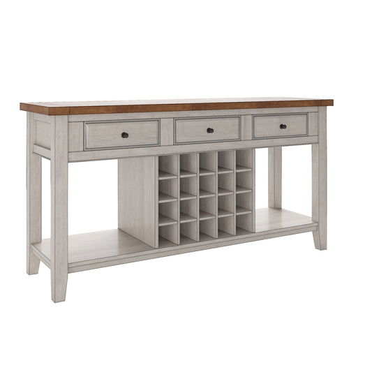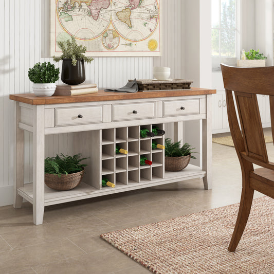 Two-Tone Wood Wine Rack Buffet Server - Oak Finish Top with Antique White Finish Base