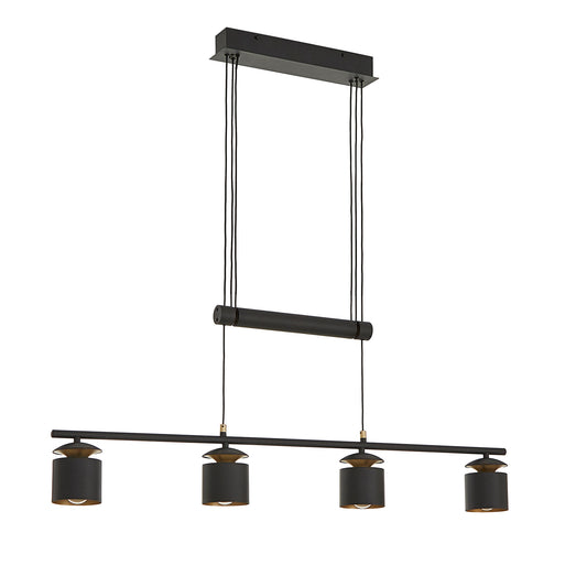 Matte Black Finish Modern Adjustable Height 4-Cylinder Pendant Light