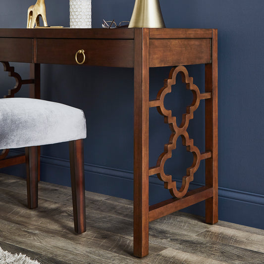 X-Base Wood Accent Campaign Writing Desk - Espresso
