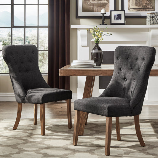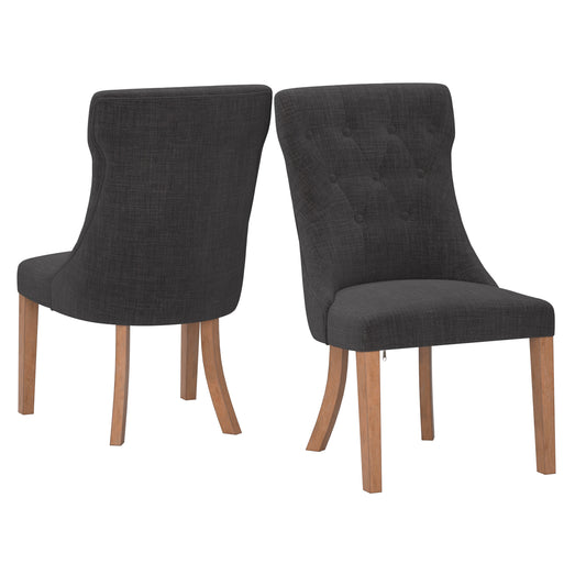 Linen Curved Back Tufted Dining Chairs (Set of 2) - Dark Gray Linen