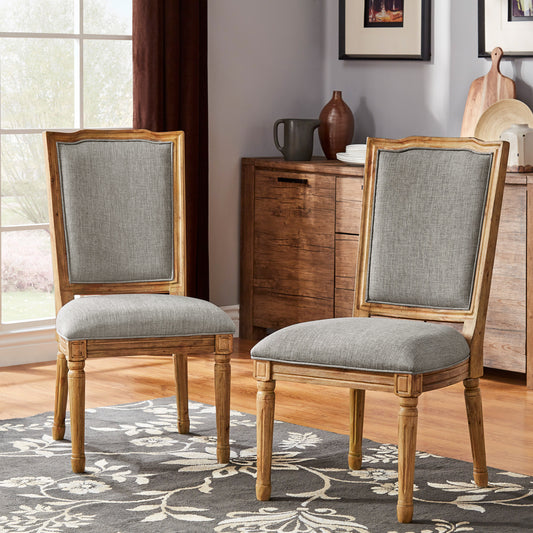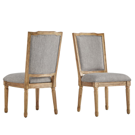Ornate Linen and Wood Dining Chairs (Set of 2) - Gray Linen, Natural Finish