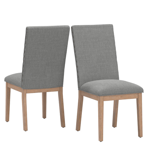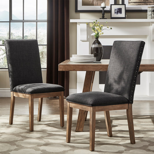 Nailhead Accent Parson Linen Dining Chairs (Set of 2) - Dark Gray Linan, Natural Finish