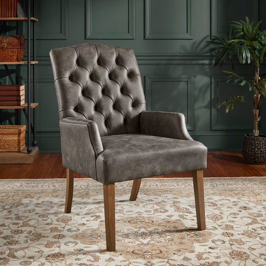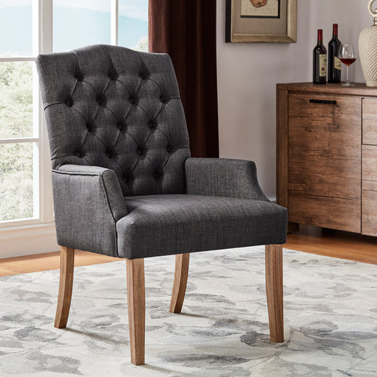 Light Distressed Natural Finish Linen Tufted Dining Chair - Dark Gray Linen