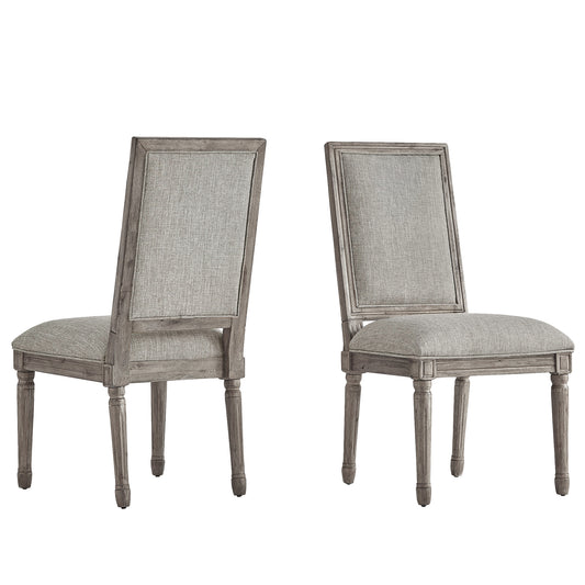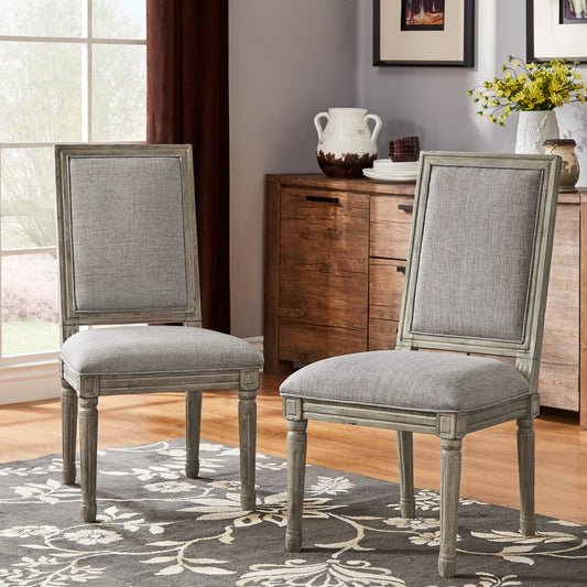 Rectangular Linen and Wood Dining Chairs (Set of 2) - Dark Gray Linen, Antique Gray Oak Finish