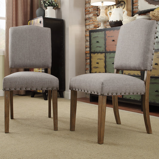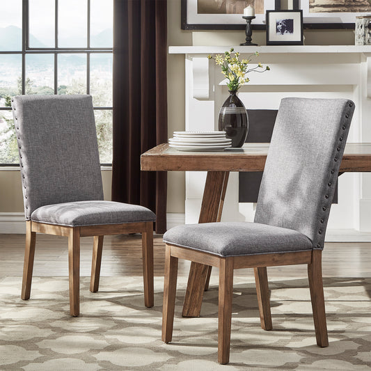 Nailhead Upholstered Dining Chairs (Set of 2) - Natural Finish, Gray Linen