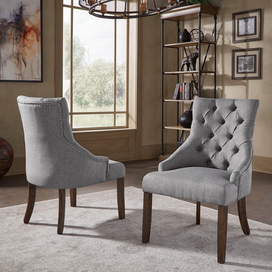 Linen Curved Back Tufted Dining Chairs (Set of 2) - Gray Linen