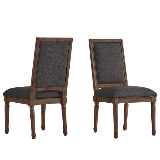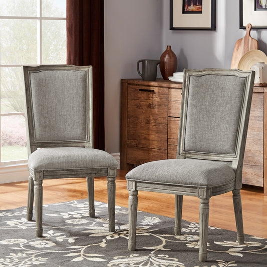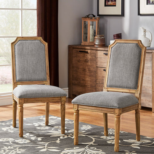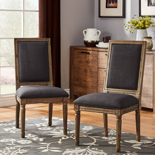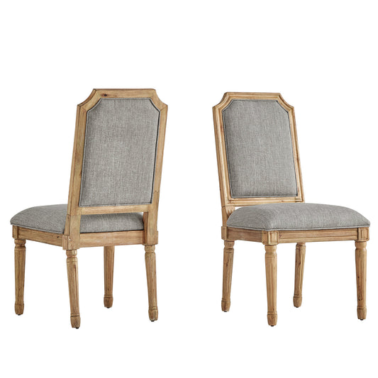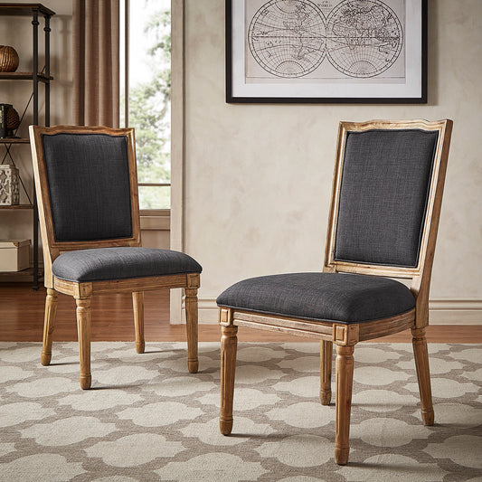 Ornate Linen and Wood Dining Chairs (Set of 2) - Dark Gray Linen, Natural Finish