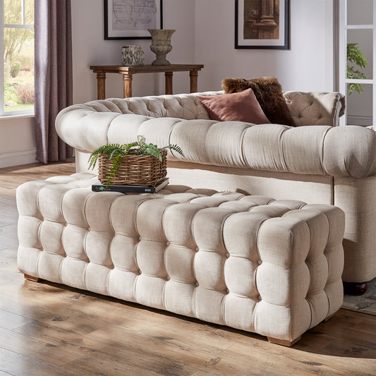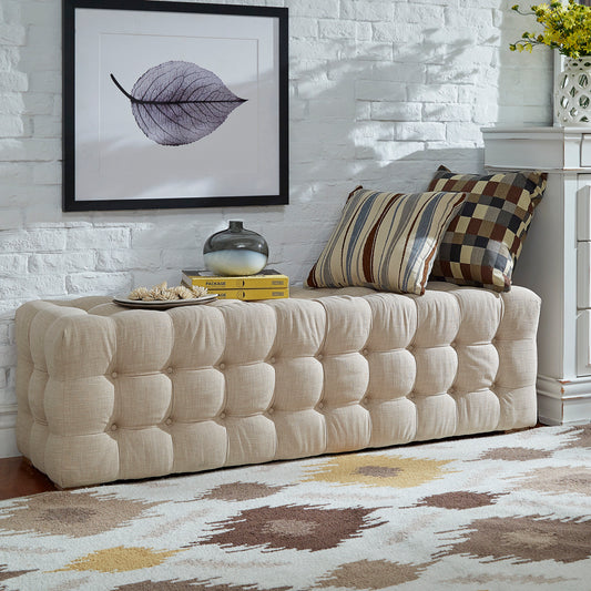 Rectangular Tufted Ottoman with Casters - Beige Linen
