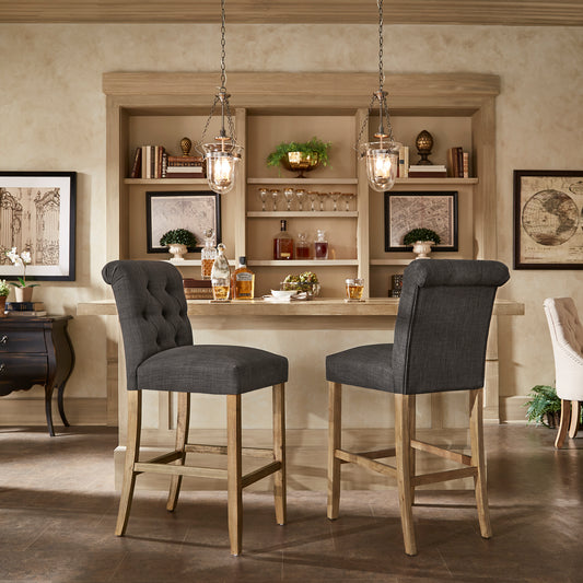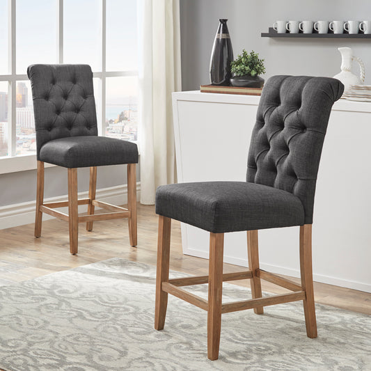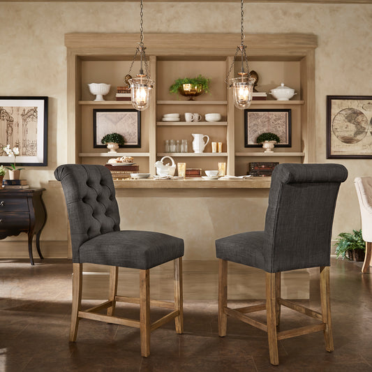 Tufted Rolled Back Counter Height Stools (Set of 2) - Dark Gray