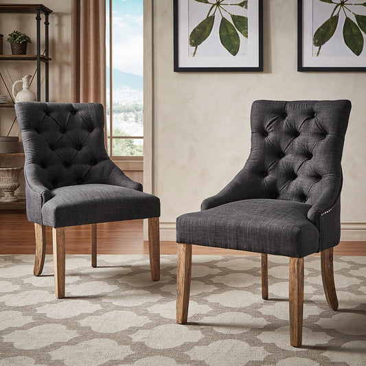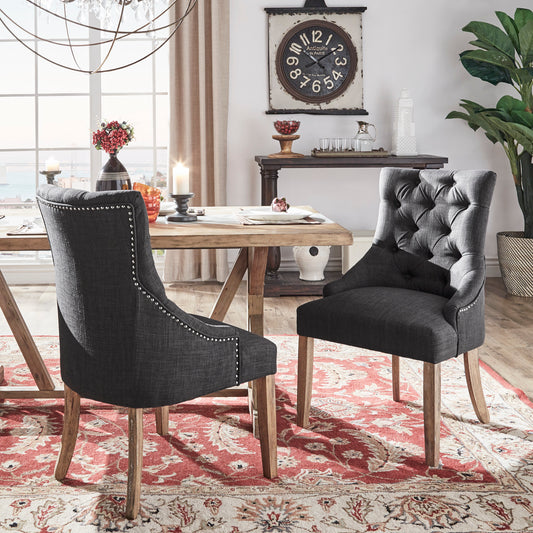 Linen Button Tufted Curved Back Dining Chairs (Set of 2) - Dark Gray Linen