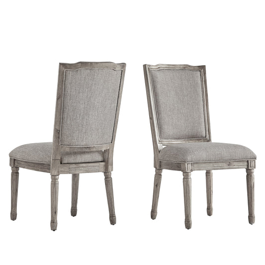 Arched Linen and Wood Dining Chairs (Set of 2) - Bridge Linan, Antiqua Gray Oak Finish