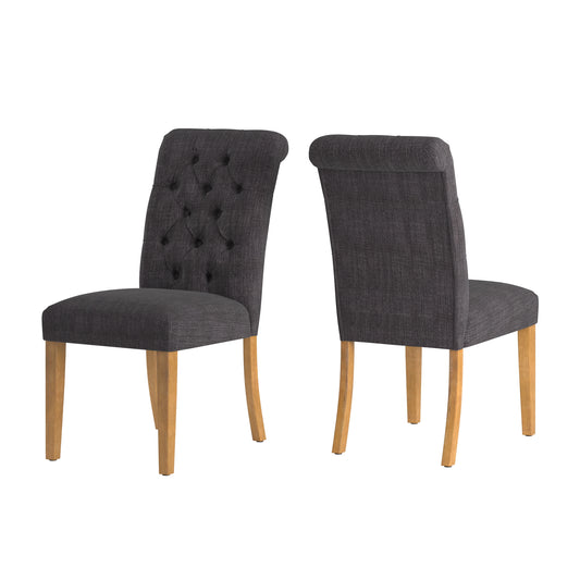 Premium Tufted Rolled Back Parsons Chairs (Set of 2) - Dark Gray Linen