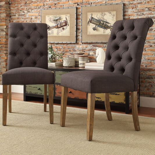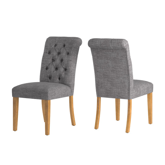 Tufted Rolled Back Parsons Chairs (Set of 2) - Gray Finish, Beige Linan