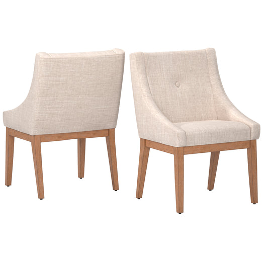 Linen Button Tufted Curved Back Dining Chairs (Set of 2) - Beige Linen
