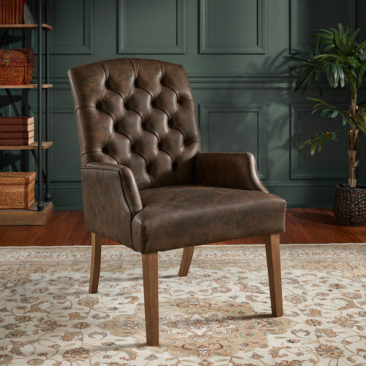 Light Distressed Natural Finish Polished Microfiber Tufted Dining Chair - Brown Polished Microfiber