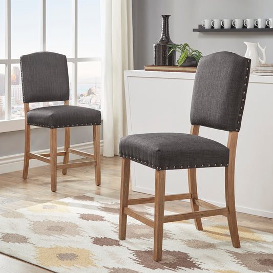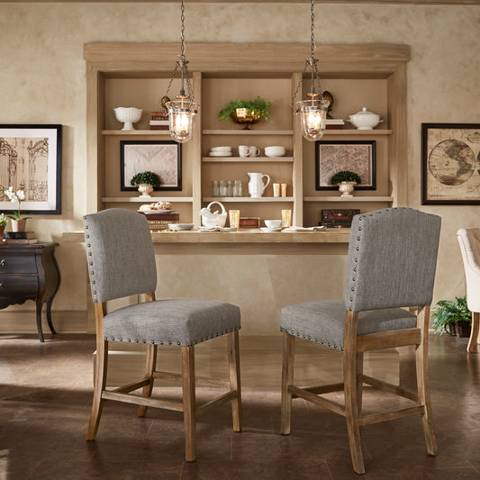 Nailhead Upholstered Dining Chairs (Set of 2) - Natural Finish, Gray Linen