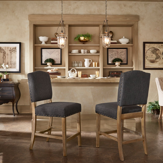 Arched Linen and Wood Dining Chairs (Set of 2) - Dark Gray Linan, Antiqua Gray Oak Finish