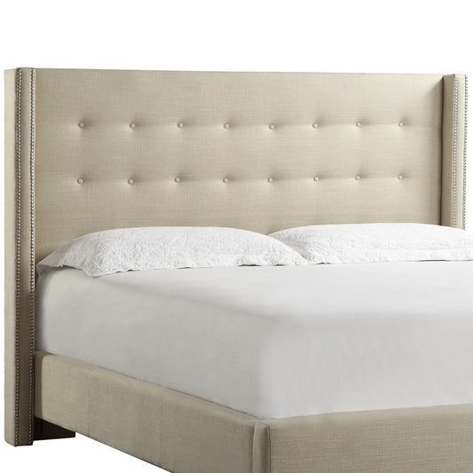 Nailhead Wingback Button Tufted Headboard - Beige Linen, King