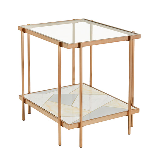 Champagne Gold Finish with Geometric Marble Pattern Glass End Table