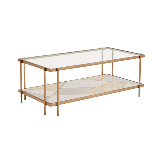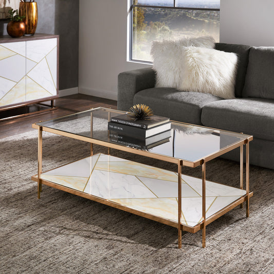 Champagne Gold Finish with Geometric Marble Pattern Glass Coffee Table
