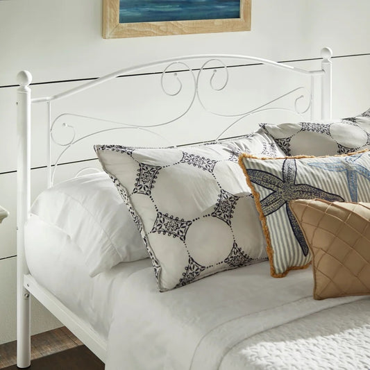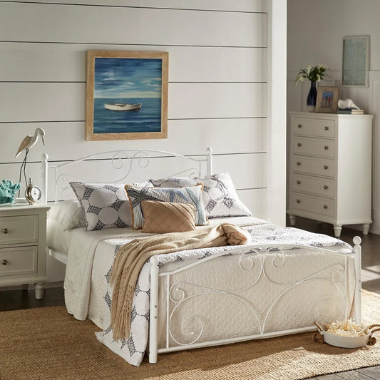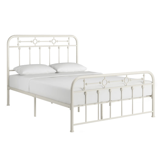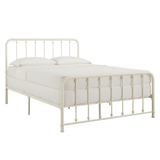 Beaded Spindle Metal Platform Bed - White, Queen Size (Queen Size)