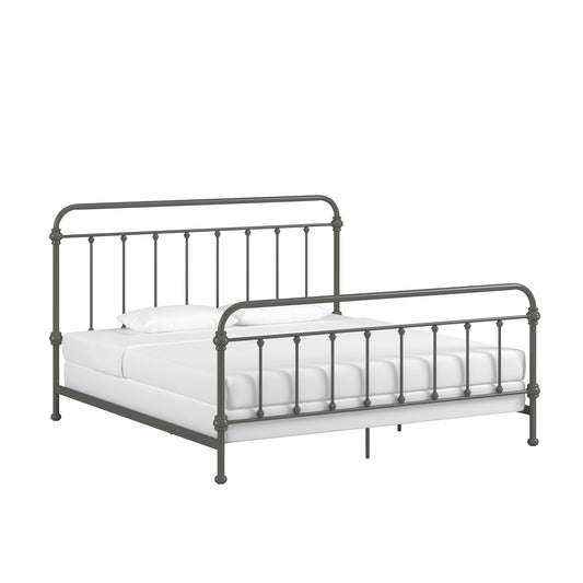 Antique Graceful Victorian Iron Metal Bed - Dark Gray, King (King Size)