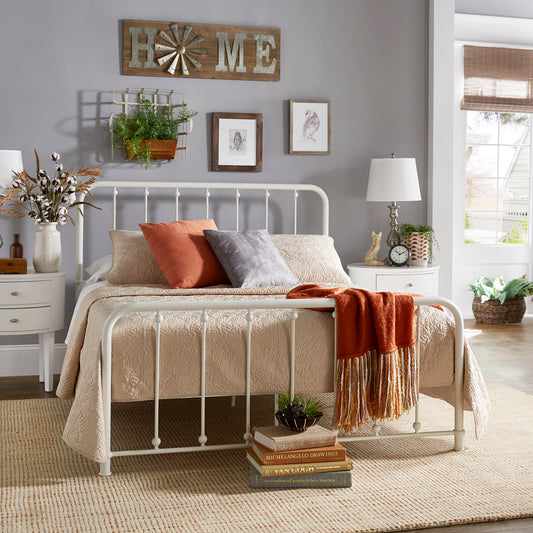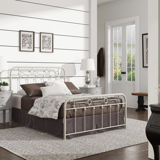 Antique Graceful Victorian Iron Metal Bed - Antique White, Full (Full Size)