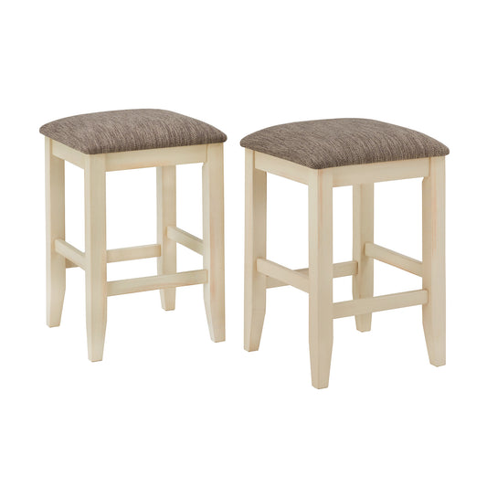 24" Counter Height Upholstered Bar Stool (Set of 2) - Creamy Off White Finish, Gray Fabric