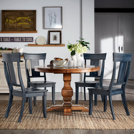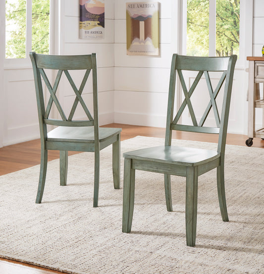 Double X Back Wood Dining Chairs (Set of 2) - Antique Dark Denim Finish