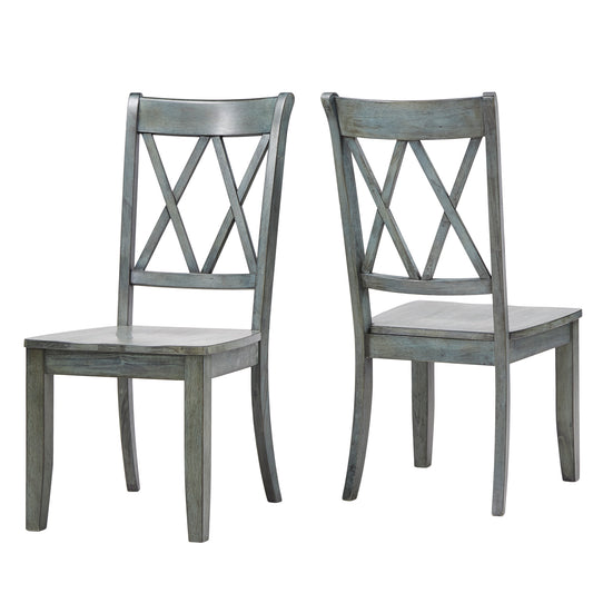 Double X Back Wood Dining Chairs (Set of 2) - Antiqua Gray Finish