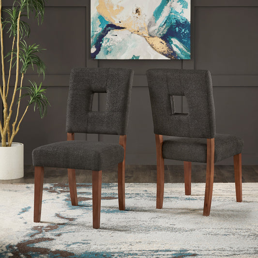 Cherry Finish Upholstered Dining Chairs (Set of 2) - Dark Gray Linan