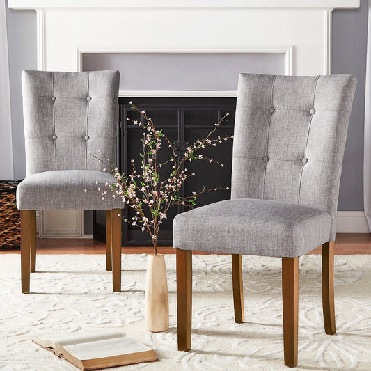 Linen Parsons Dining Chairs (Set of 2) - Espresso Finish, Dark Gray