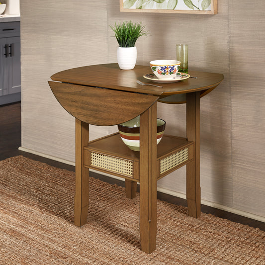 Cane Accent Dining - Round Top Table with 2-Drop Leaves, Oak Finish