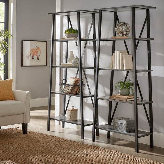 Rustic X-Base 32-inch Bookcase - Gray Finish