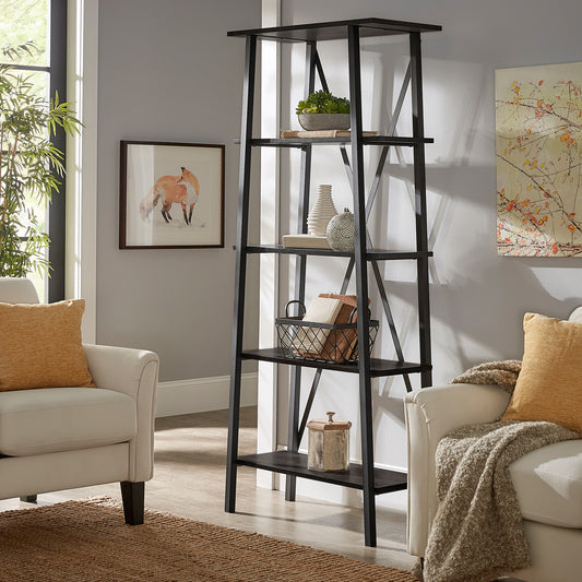 Rustic X-Base 32-inch Bookcase - Black Finish