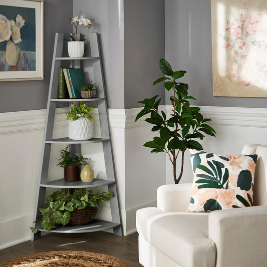 Ladder Back 24"H Swivel Counter Height Stool - Dark Charry Finish, Gray Linan
