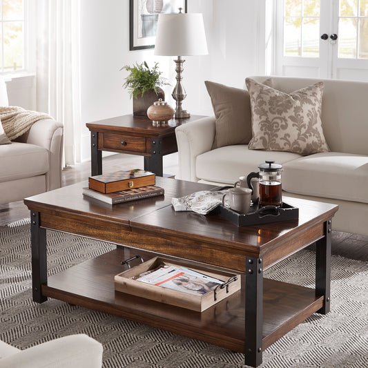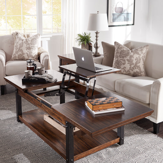 Wood Finish Lift-Top Coffee Table - Dark Cherry Finish