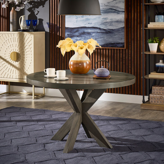 Weathered Wood Finish Table with Cross Base - Gray, 48" Round Dining Table