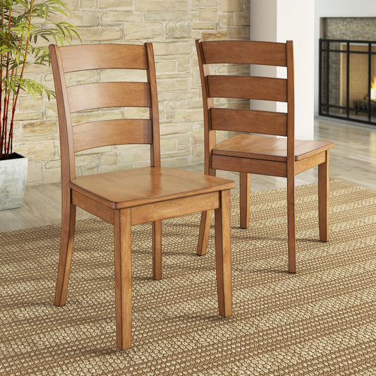 Ladder Back Wood Dining Chairs (Set of 2) - Oak Finish