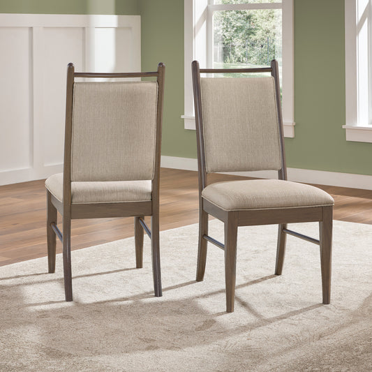 Arched Linen and Wood Dining Chairs (Set of 2) - Bridge Linan, Antiqua Gray Oak Finish