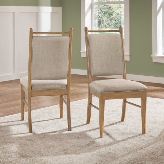 Wood Finish Beige Fabric Dining Chair (Set of 2) - Oak Wash