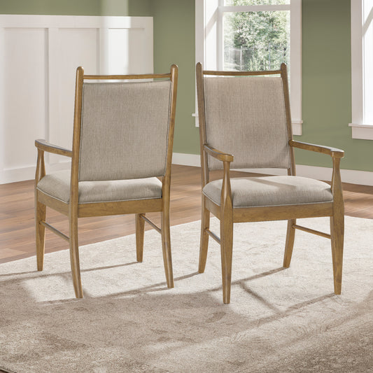 Wood Finish Beige Fabric Arm Chair (Set of 2) - Oak Wash